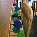 4人掛けのテーブル席一つ、壁に向かって座る席が少し、そして2人席一つと小さなお店。これぐらいのスペースがまた好き。広過ぎて色んな人がいるより落ち着くのです。 そして色とりどりのお座布団も楽しい。 |