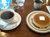 六甲の喫茶月森へ。こちらの店主さんはまいさんのお友達。 ホットケーキに厚みがあって、本当は二段重ねとか一人で食べたいけどそれはカロリー的にもいけない気がしてがまん。