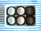 まりもちゃんはドライフルーツを使ったお菓子で、緑色のがあんず&ピスタチオ(日本茶が合うそう)、茶色のがいちじく&アーモンド(紅茶が合うそう)、紫のがプルーン&くるみ(コーヒーが合うそう)。 合う飲み物が書かれていましたが、はちみつのお茶でいただきます。 |