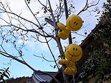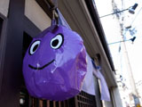 旧三条通にはもてなすくんがあちこちにぶら下がっています。コンディションのいいのもあればシワシワになっているのも…。
