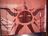「体感する、人類の進歩と調和」という展示室の中へ。太陽の塔の顔ののれん(?)の中に入ってみると、博覧会当時の世界初立体音楽堂の内部が見られました。