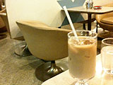 1970年気分に浸りながらアイスのカフェオレを。そしてこの後の行動を考える時間。夫は予約していた美容院に行くのでしばらく別行動です。