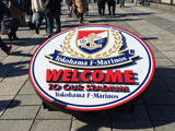 スタジアムまでの道には”この街には、横浜F・マリノスがある。”、”For Your Football Life”と書かれたトリコロールの旗が。