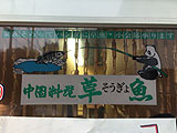 予約していた18時に「草魚」に到着。壁には草魚、竹を登るパンダ。窓ガラスや看板にはパンダが草魚を釣っています。ドアには閉店のお知らせが。既に店内は賑わっており、予約をしておいてよかったと思いました。閉店を惜しむ人達が押寄せているのでしょうか。