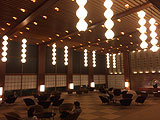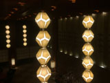 オークラのロビーと言えばこのランタン。五角形の板を10枚つなぎ合わせたものが五連つながっています。メザニンと呼ばれる中二階にあがって見学をしました。