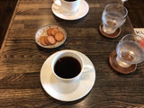 夫はホットコーヒーを。カップとソーサーはお店のオリジナル。コーヒーもオリジナルのブレンド、「純喫茶山雅」時代のオーナーの娘さんが監修されているそう。