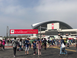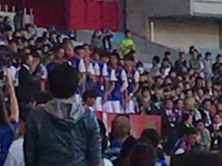 席は上のほうになったけれど、俯瞰で見やすいという利点もあるかな。チケットが取れて決勝の地に来られた事がうれしい。