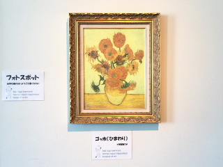 フォトスポットとして飾られている複製画のゴッホの『ひまわり』。