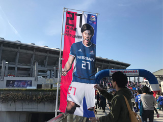毎年変わる、スタジアムに近付いて来た所に並ぶ選手たちの幟。ルヴァン杯決勝は埼玉スタジアムだったし、今季最初のホームでの観戦が最終節というのが残念だけど、一回でも来る事ができてよかった。