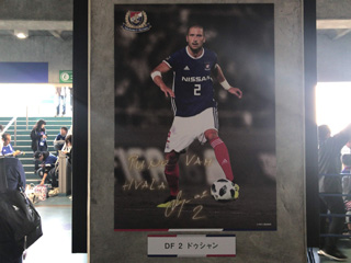 スタジアムに飾られている日産自動車の広告も楽しみのひとつ。ウーゴ、飯倉、あまじゅん、中澤。