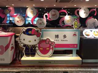 11:54に博多着。駅には「ハローキティ 新幹線 カフェ」が!たっぷりと時間があればハローキティ新幹線(各駅停車)で博多駅まで来たのにね。