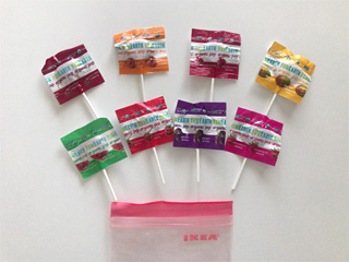 キティちゃんの黄金糖、赤と青がキティちゃんカラーですね。こんなかわいい黄金糖が出ているの、知りませんでした。