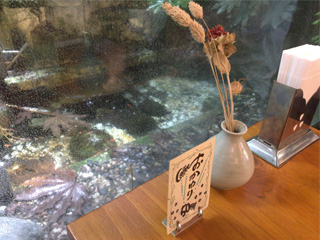 天井や床の張り替えはされたそうだけど、テーブルと椅子、シャンデリアなどそのまま残っています。店の奥には庭と噴水も。