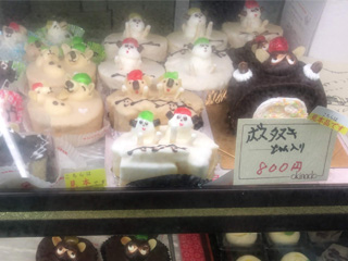 数々のたぬきケーキが並んでいます。夏でなければ、もっと近所ならば何匹か買って帰りたいなあと思うのです。