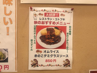おすすめメニューは”オムライス きのこデミグラスソース”。あ、”秋”のおすすめになっている!